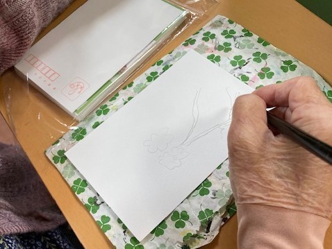 画伯が描いた絵手紙は受付に飾らせていただいております。