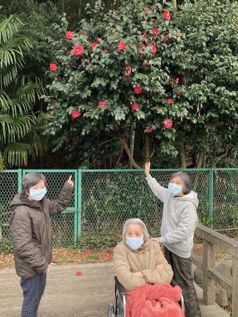 こっちには椿が咲いてるわ!