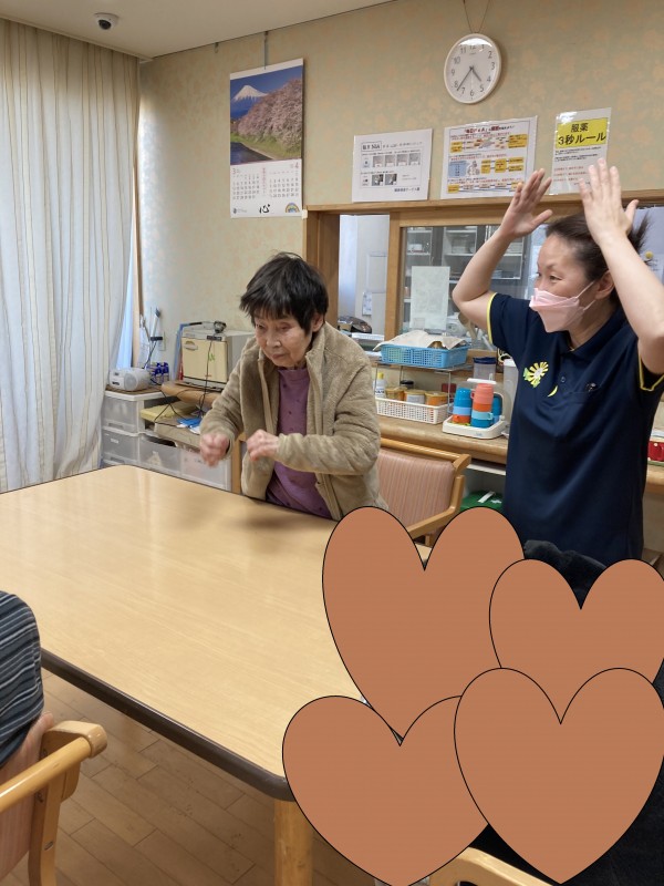 椅子から立ち上がって体操する方、