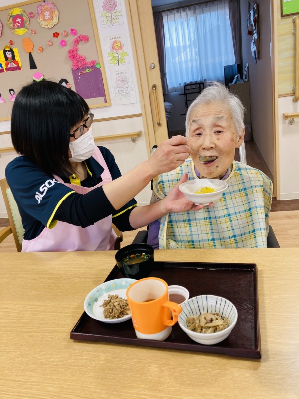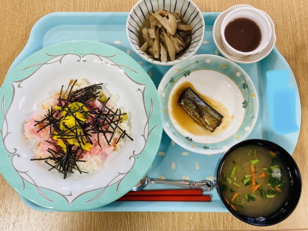 3月3日はひな祭り、本日の昼食は特別メニューのちらし寿司でひな祭りをお祝いします♪
