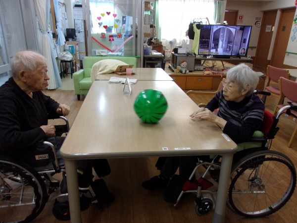 ケーキを作ってる間は、2人でボール転がしを楽しみました~(^.^)/~~~