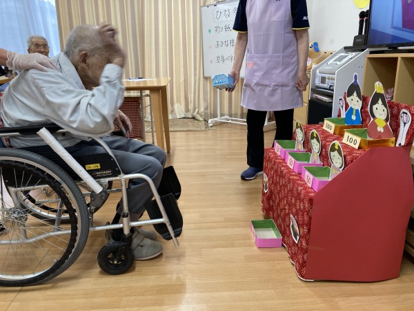 お部屋に飾るひなまつりの掲示物作成・ひなまつり玉('Д')入れゲーム(景品あり)・ひなまつりおやつ・記念撮影と