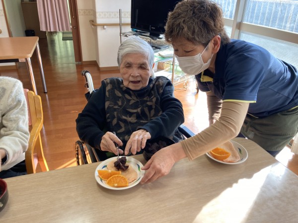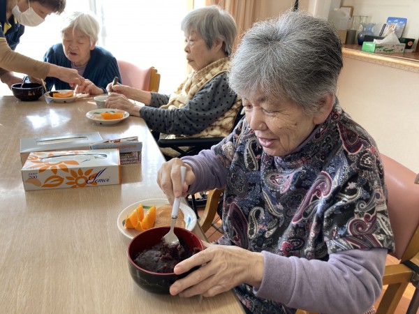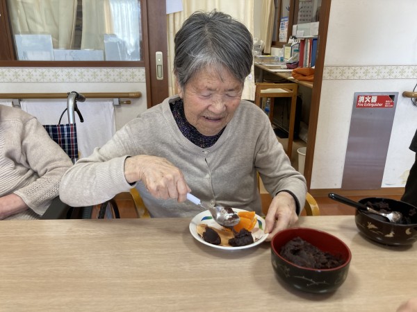 利用者様に「こしあん」「つぶあん」を選んでいただき、好きなだけあんこをのせてもらいました。