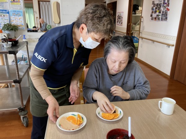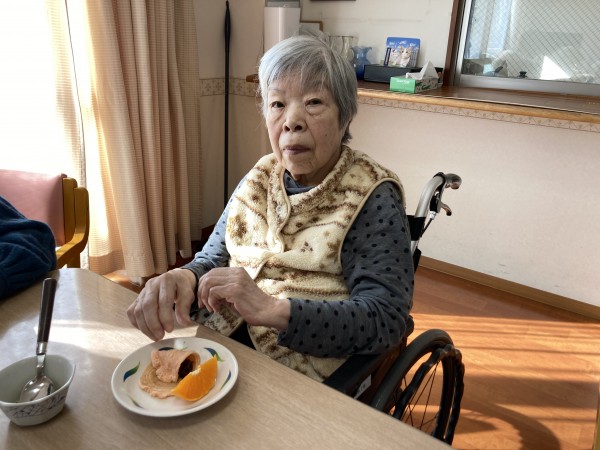 利用者様の家族様にいただいたフルーツを添えて…