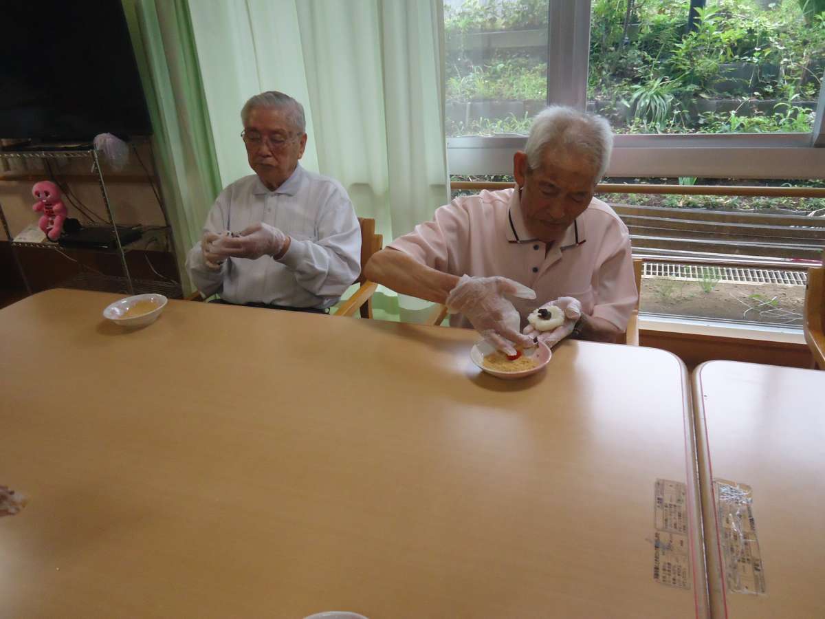 きなこをまぶしておいしそうなおはぎが出来上がりました♪