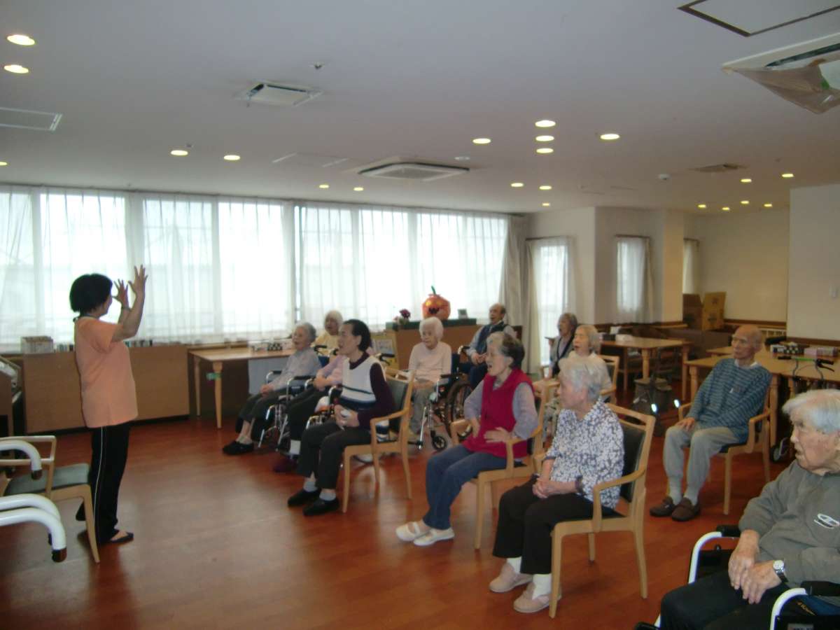が開催され、入居者様職員共々参加いたしました。こちらのヨガは無理なく行える椅子に座ったままのヨガで姿勢の改善にもなり転倒