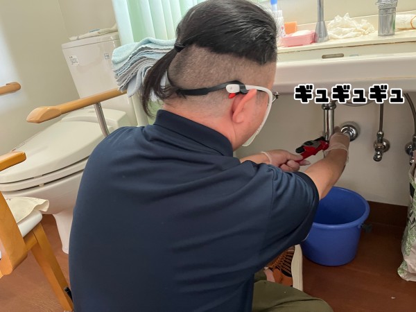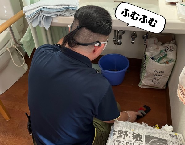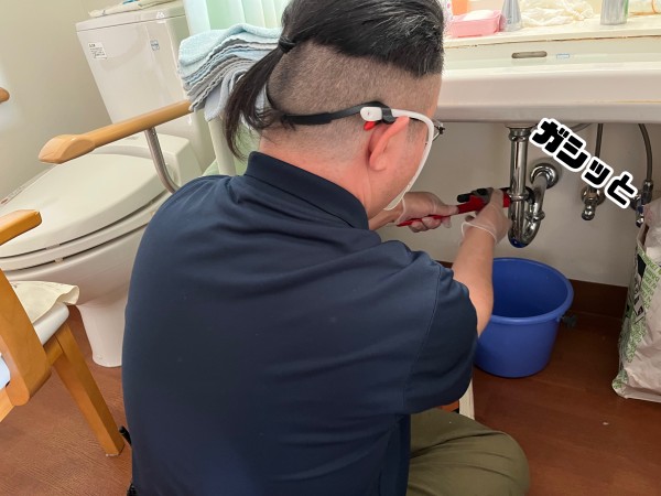 排水管を外して詰まりをなおす。