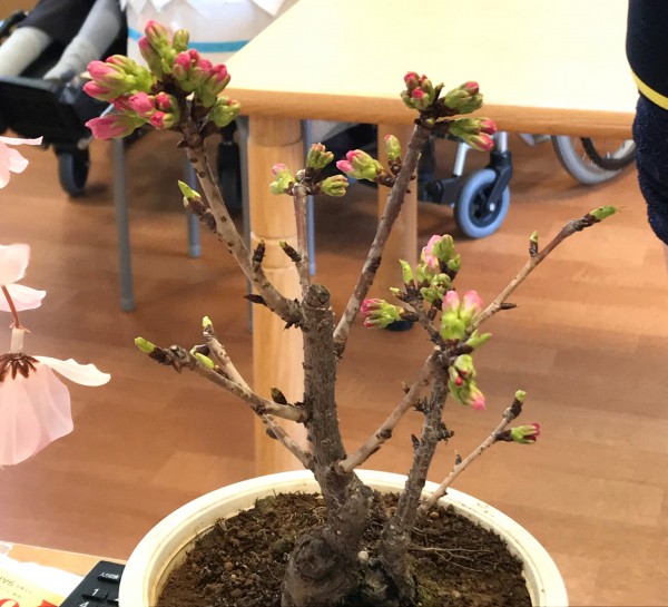 2月中旬よりフロアで育てていた桜がとうとう咲きましたー⤴⤴