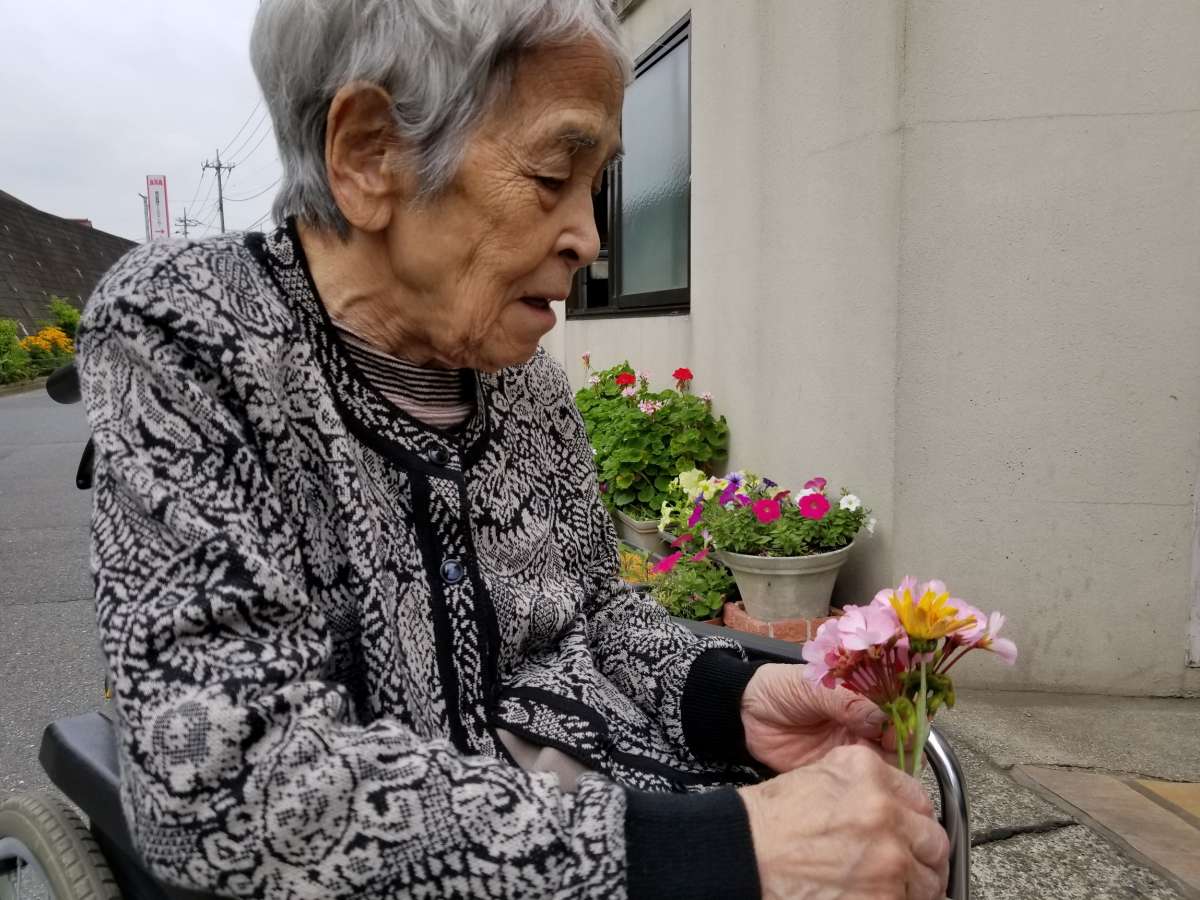 ちょうどお庭で、お花のお手入れしている最中で