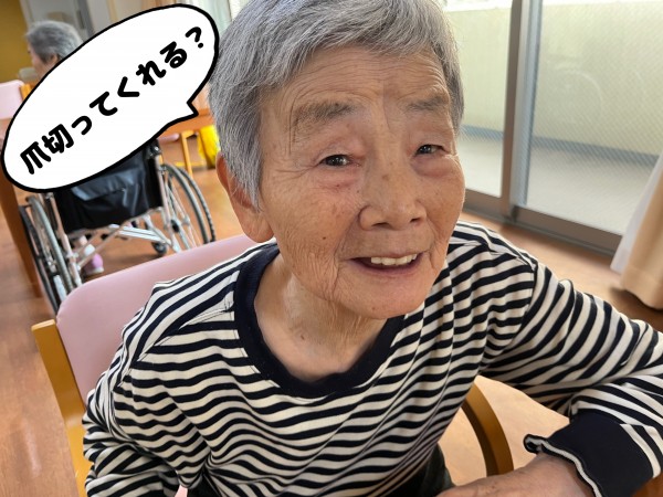 わたしが切りましょう!と、ケアスタッスの五十嵐さん。