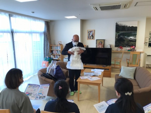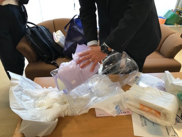 さて、本日は、講師の先生をお招きし、紙おむつの基本的な当て方と、男女別の効率の良い当て方などについて、勉強会を開きました。