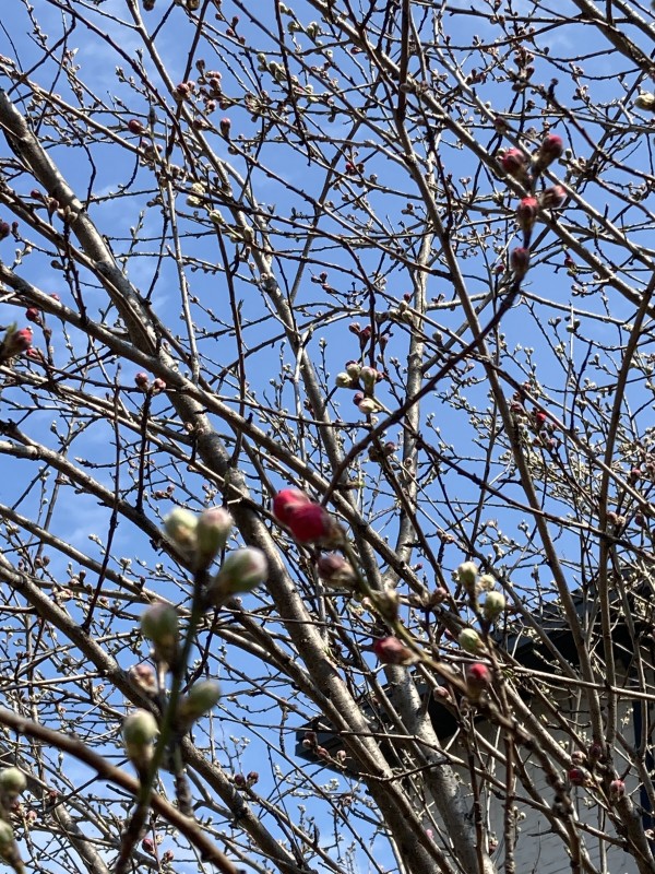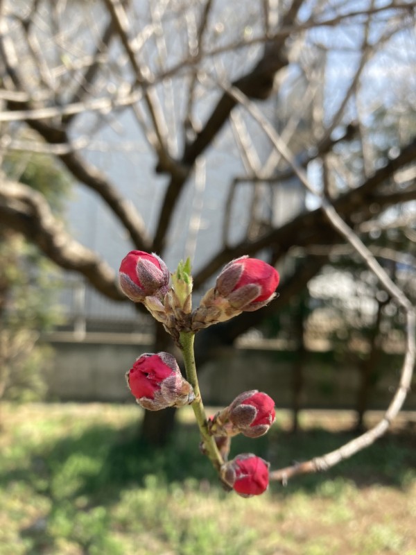 そのためか、すこや家・大宮日進の自慢の中庭にある桃の木も、そろそろ花が咲きそうです♪
