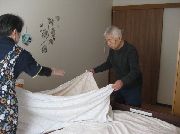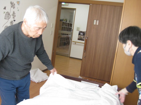 今日はシーツ交換のお手伝いを行いました!!