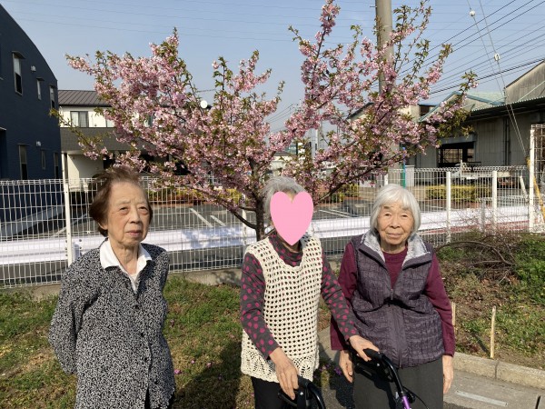 暖かくなったらお外にでなきゃ!とレクで外気浴(花見)行いました!