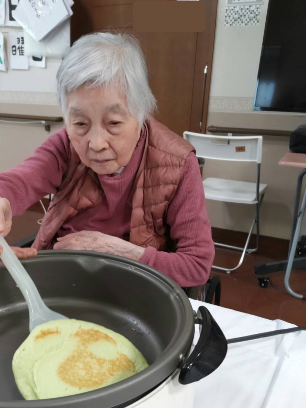 三色の菱餅色のホットケーキを作って頂きました!