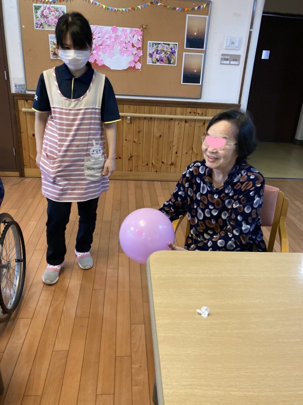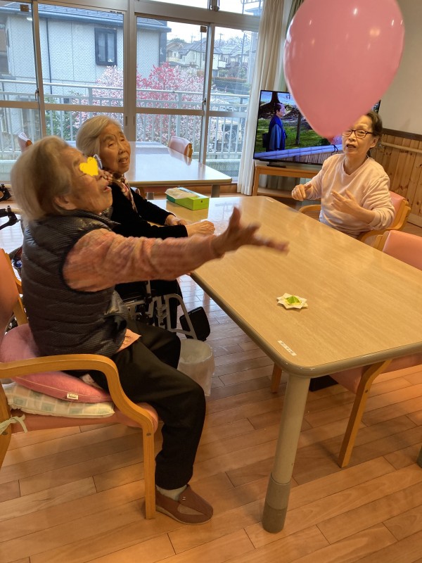 さて、そんなポカポカ陽気になってきましたので、2階の皆さまで風船バレーを行うことにしました!
