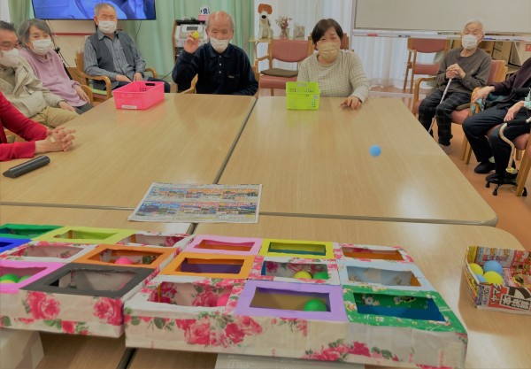 さて本日の遊蓮田は「色分け玉入れ」ゲームとなります!