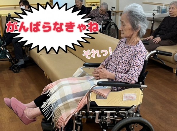 プレゼントのブランケットを掛けて参加した体操では、一番足が上がっていらっしゃいました!