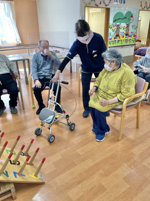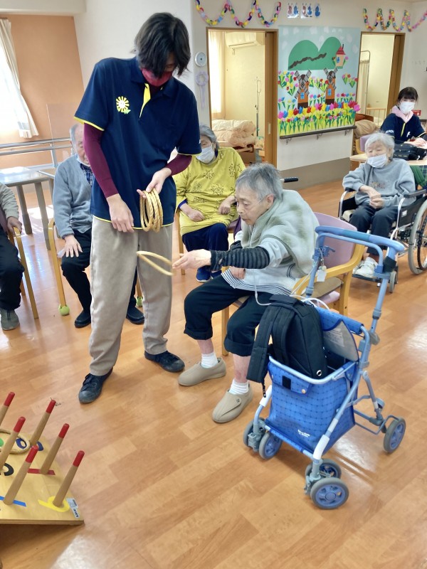 輪投げ6本を2回ずつ投げて、合計点で順位決めました。