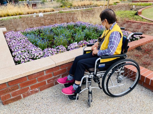 道端の花に触れながら、公園に向かいます。