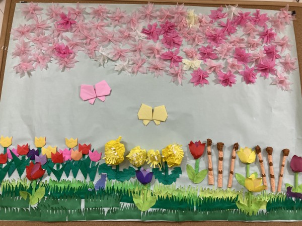 フロアの壁飾りもさくらが満開です。