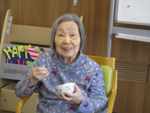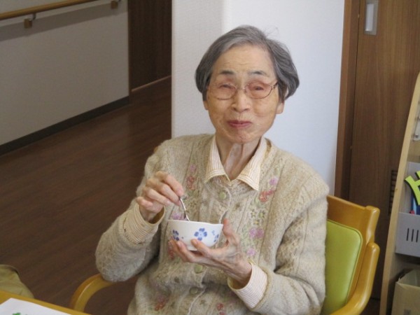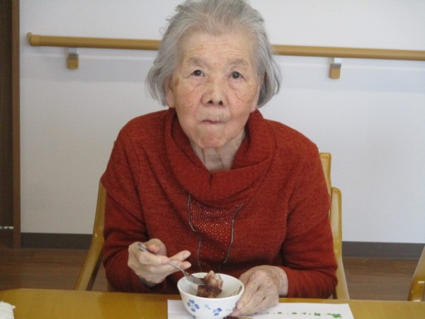 餡子のおはぎを手作りしましたのでみんなで食べましょう! 「おはぎを食べるの?? はじめてだわ?」「たべていいの? 嬉しい、ありがとう」と笑顔で召し上がられました( ^ω^)・・・ 『美味しかったわ。お彼岸におはぎを食べるのね…?』とお喋りしながら楽しまれていました!(^^)!