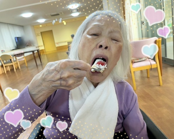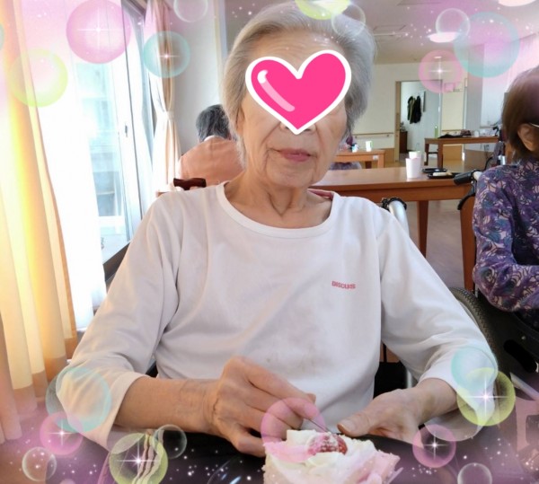 オヤツには、バースデーケーキをご用意させて頂きました。