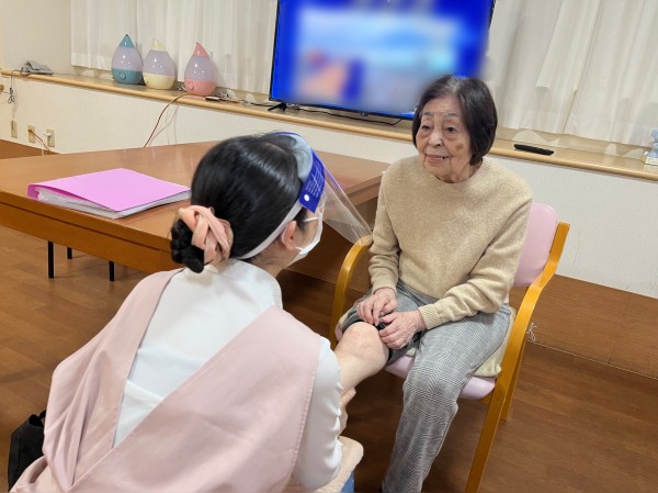 今では、こうして足を見ながら笑顔で施錠を受けていらっしゃいます。