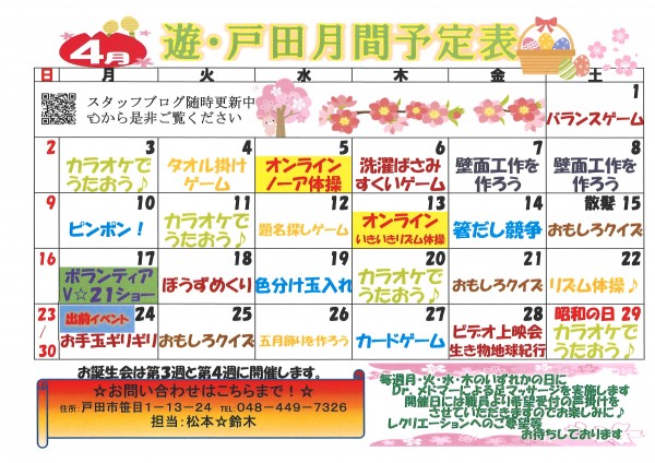 4月のレクリエーションカレンダー