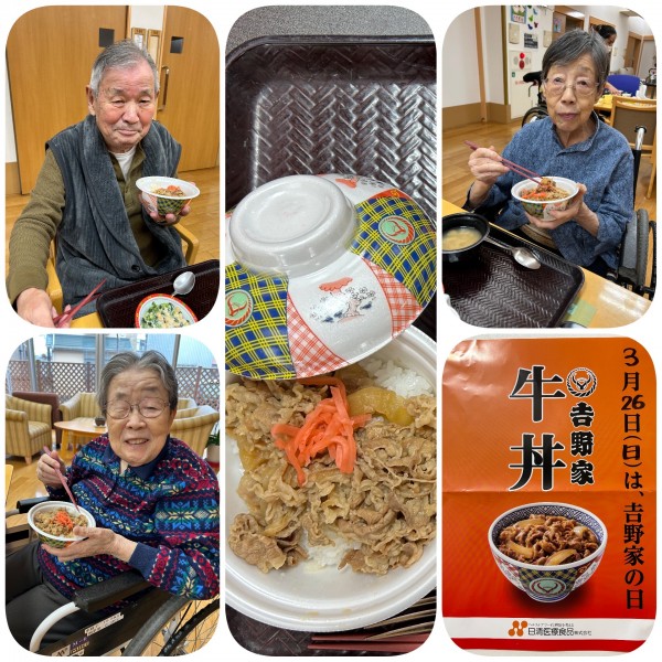 3月26日(日)のお昼は吉野家さんと日清医療食品さんのコラボ企画【牛丼】でした。