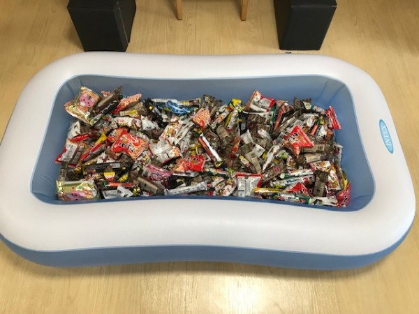 たくさんあるお菓子を前に「どれにしようかしら?」と真剣なまなざし(`・ω・´)