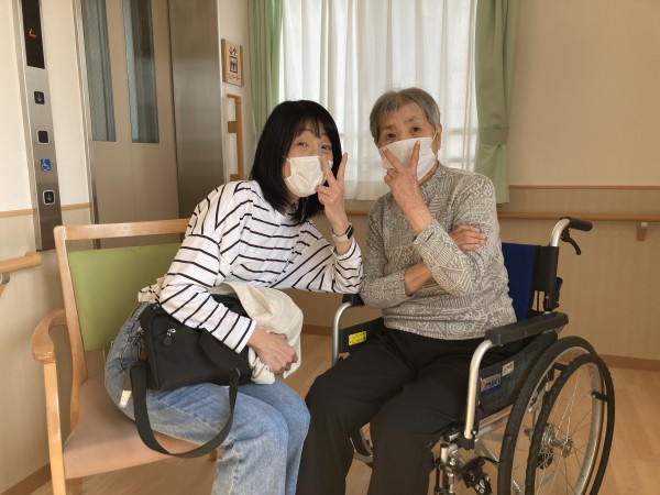 いつもニコニコ明るい方ですが、家族様と一緒の時はひと際笑顔が輝いていらっしゃいます。やっぱり家族様は入居者様にとって元気になる一番のお薬ですね。