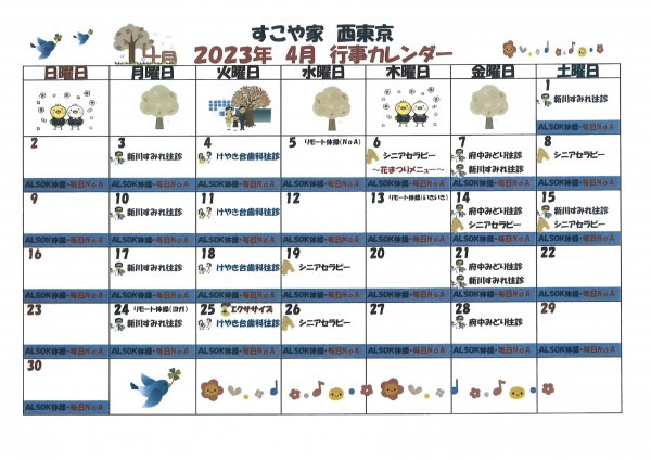 4月のレクカレンダーが完成しましたのでご案内致します♪