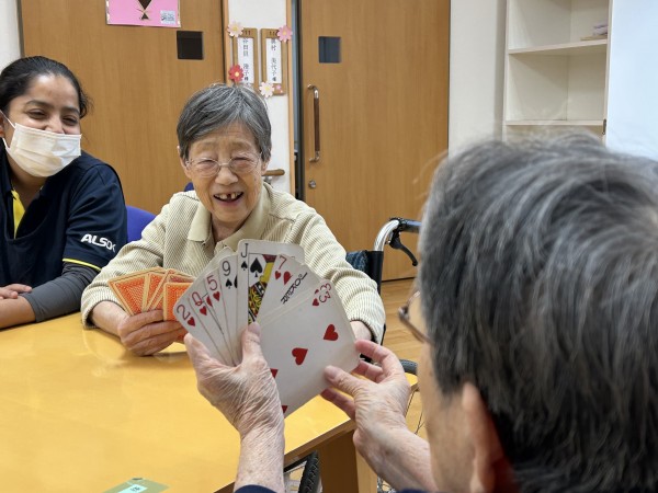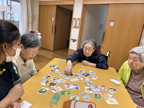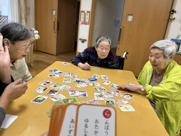 「子どもが小さい時はよくやった」「たまにやると面白いね」と話したり、かるたを取るのも性格が出るようで皆さんとお互い突っ込んだりと大笑い!楽しい時間を過ごしました。