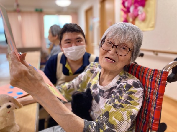 お一人お一人にバースデーソングを歌ってお祝いし、ケアスタッフからの寄せ書きをプレゼントさせて頂きました。