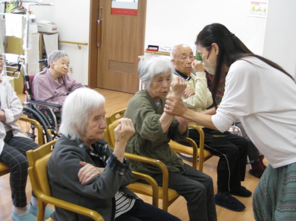 訪問あんしんヨガを行いました。呼吸法で行うヨガです。ゆったりとして行いました。はじめは難しいわ~!!と仰られていましたが気持ちいいねと話されていました。深い呼吸からはじめ「あーーーーーー」「いーーーーーー」と声をのばしたりとして声を整えました!(^^)! 手を上げて下げてたりと呼吸をしながら行いました( ^ω^)・・・ 「楽しかった! 身体がポカポカしてきたみたい」と好評でした。これからも続けていきたいと思います。