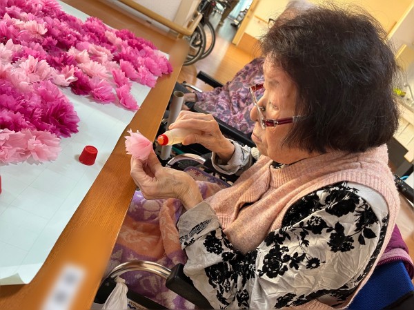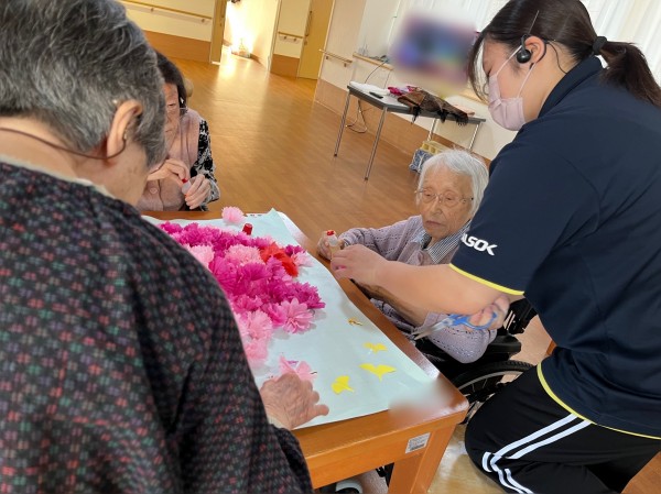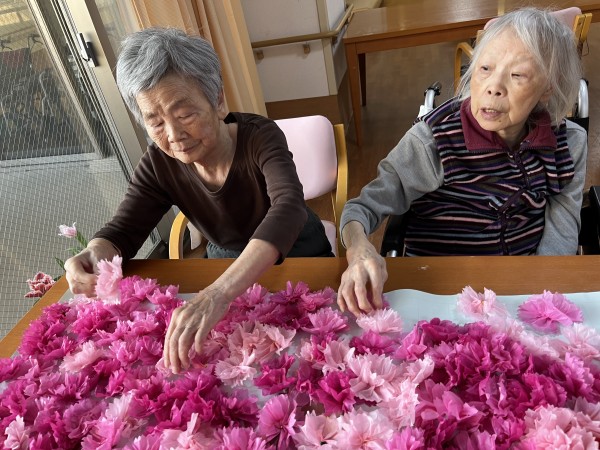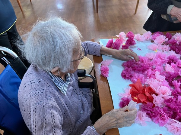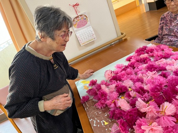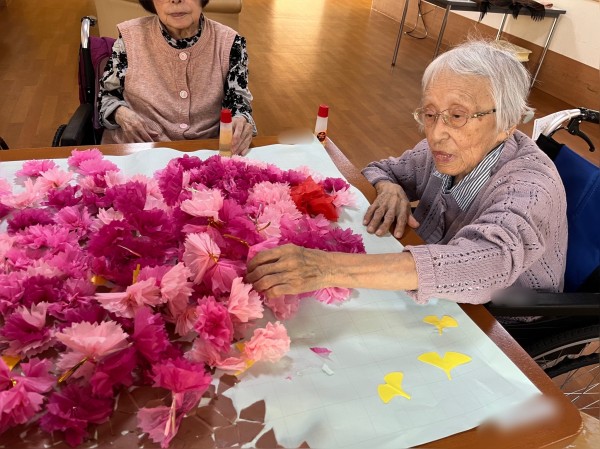 ご入居者様達は、どうかな?こうかな?と仰りながら『春爛漫』を仕上げてくださいます。