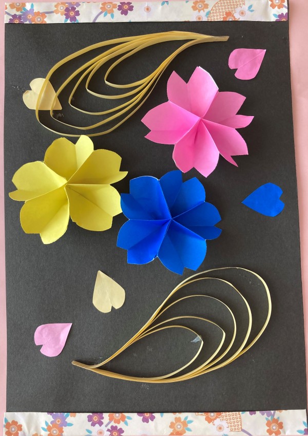 この薔薇の折り紙をご利用者様と一緒に折る。