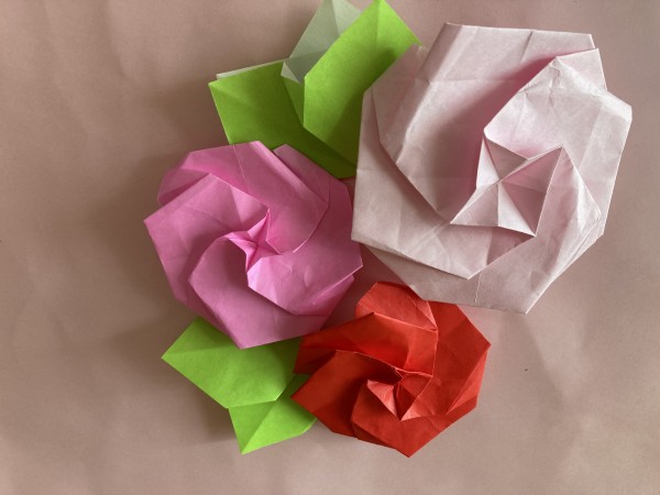 これ薔薇ですよね。1枚の折り紙で作れるそうです。