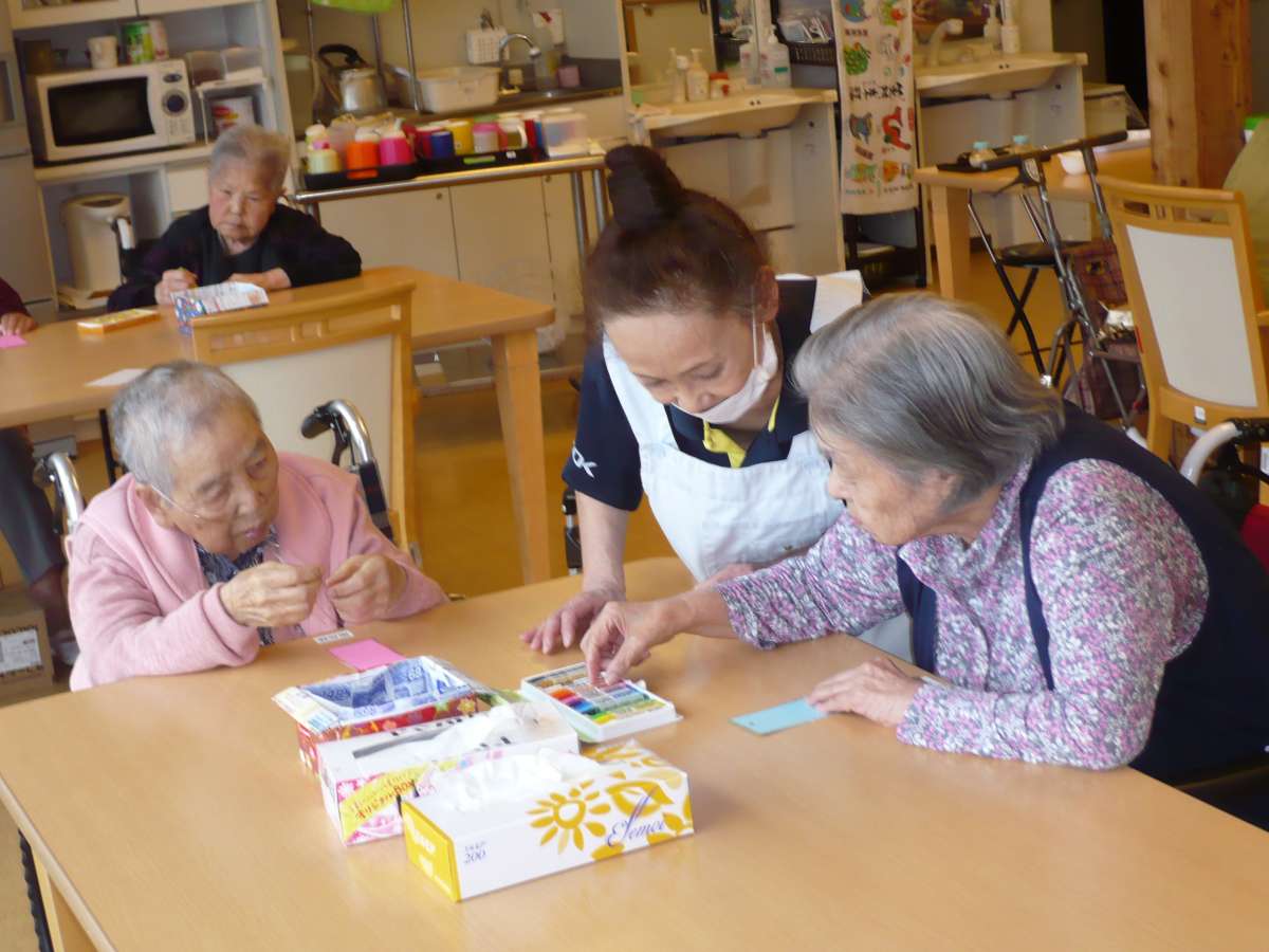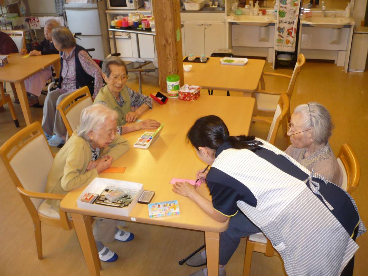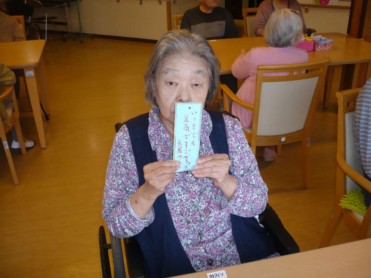 本日は、入居者様に七夕に向けて、短冊に思いを込めた願い事を、