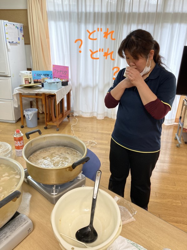 さて、先日のお花見では、ホーム長手作りの豚汁が振舞われました。
