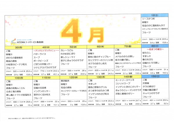 4月献立表
