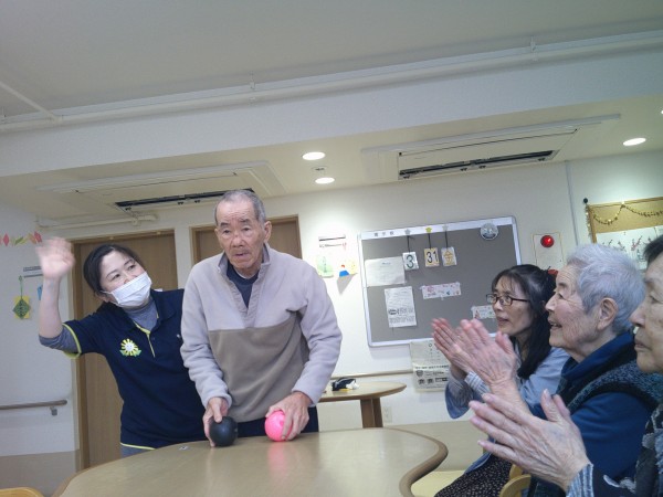 「卓上ボーリング」 皆様、応援し合って和やかに
