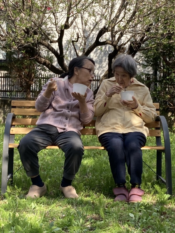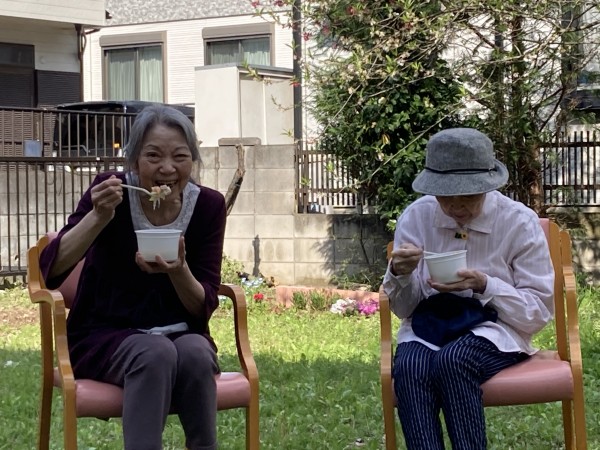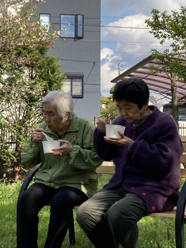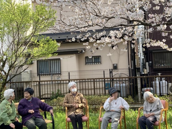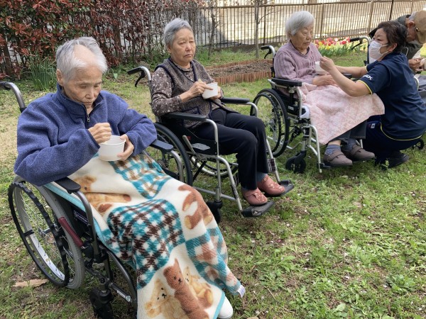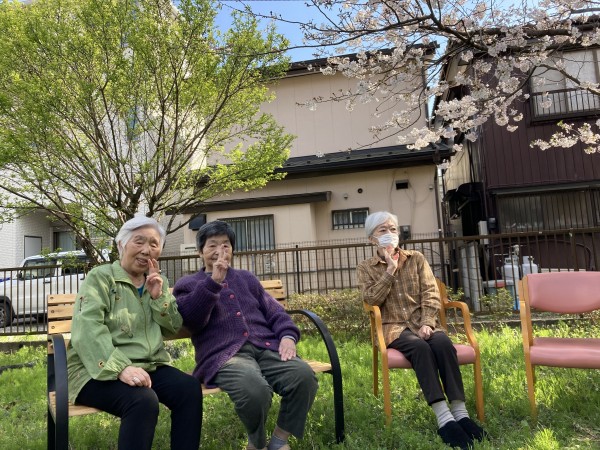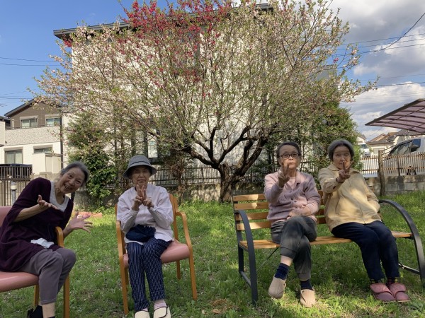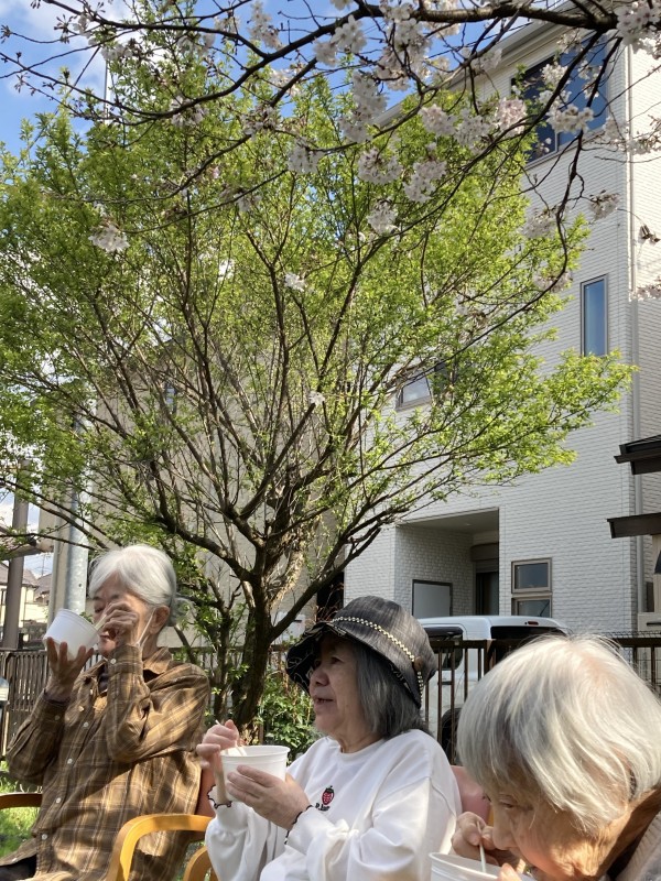 一度に全員で中庭に出ることが出来なかったので、2部に分けてお花見を行いました。
