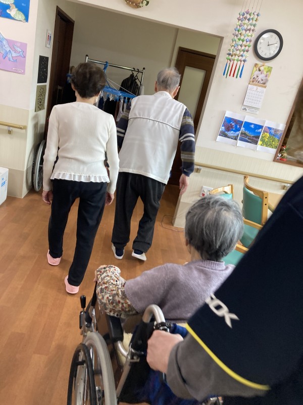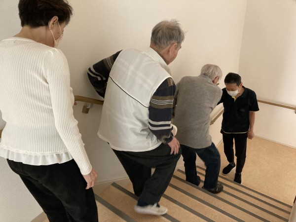 ただ歩くのが不自由なご利用者様もいらっしゃいますので今後はシーツでタンカを作り階段から下りていただける訓練も検討しています。