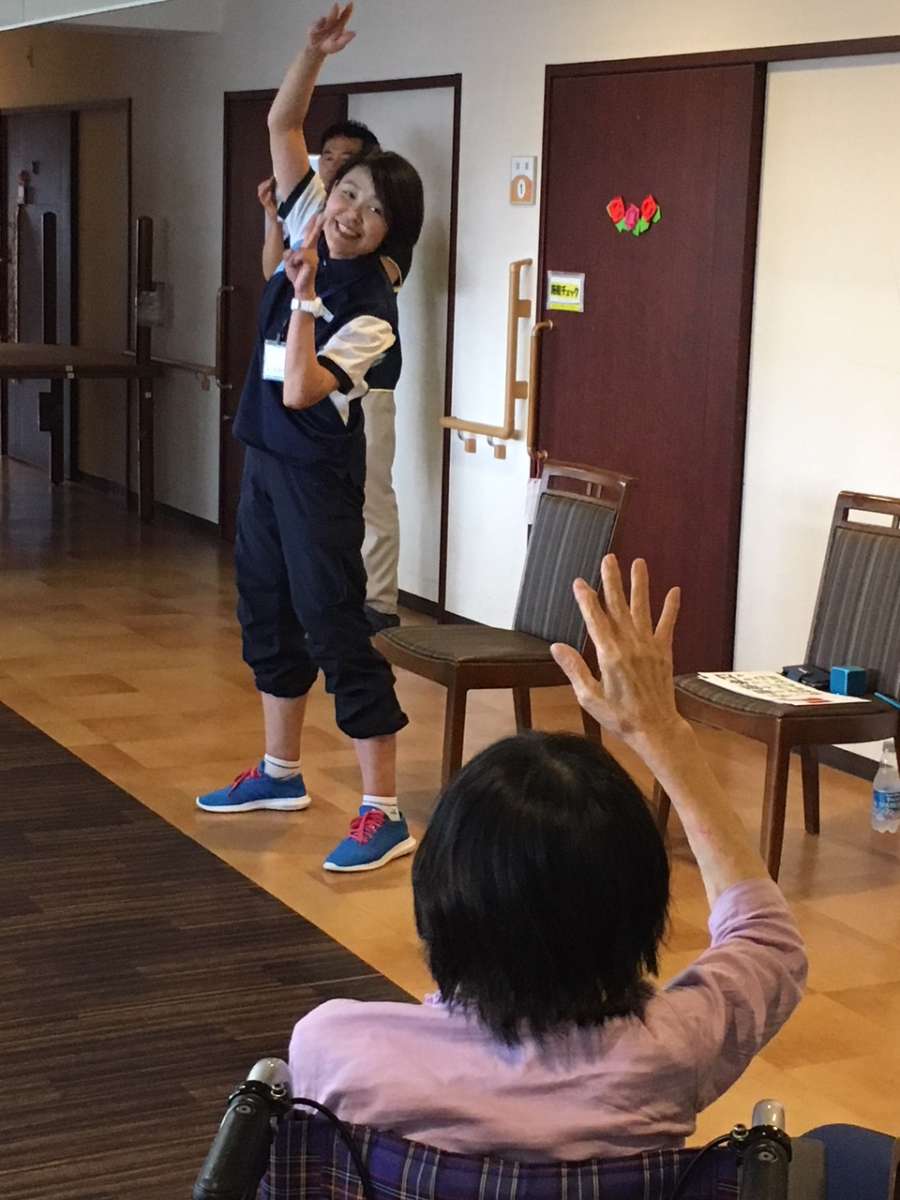 健康椅子体操とは、椅子に座りながらでもできる体操ながら・・意外とハードな内容&脳トレも組み込まれているプログラムになります。それもそのはず、講師はセントラルフィットネスジムから来られた体操の先生!通る声でリズミカルに「ワン・ツー」「ワン・ツー」と参加した職員も思わず引き込まれてしまう内容で、あっという間の1時間でした!!