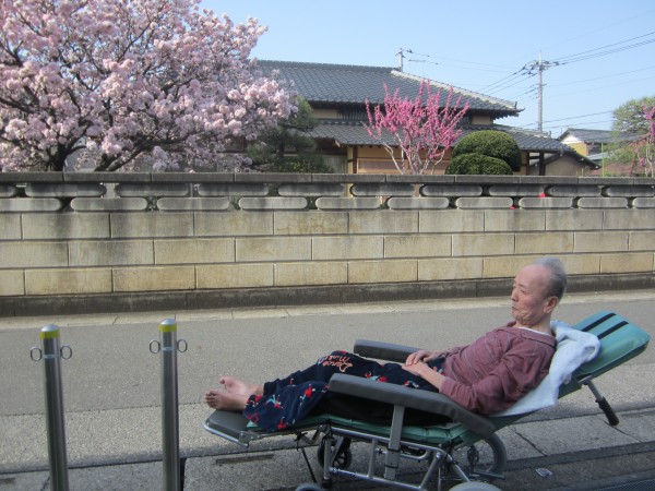 外の新鮮な空気を吸って春の暖かい風に触れると気分が良く日光浴、外気浴で笑顔が多くなりました\(^o^)/