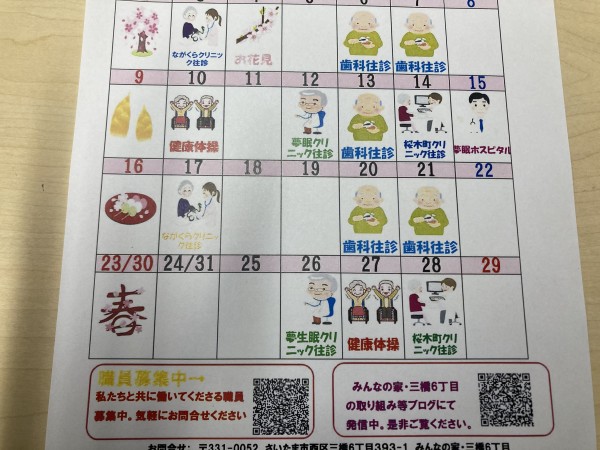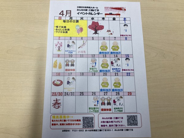 ★☆三橋6丁目の4月のイベントカレンダーが完成2023年(^^♬ 『みんなの家・三橋6丁目・介護ブログ』☆★