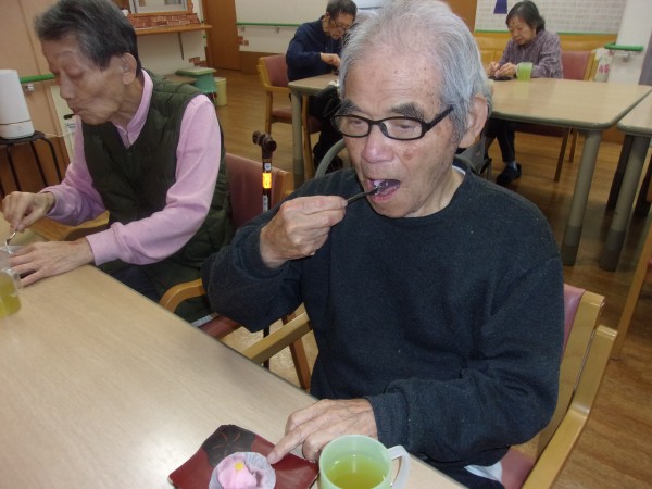 そしてゲーム無事に終えた後は皆さんと桜のお饅頭を召し上がりました。