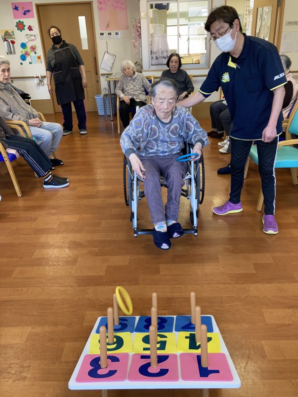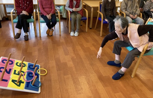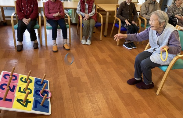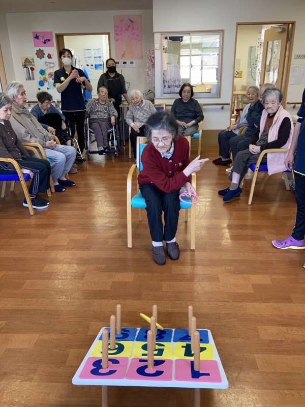 準備運動が終わったらいよいよ輪投げゲーム開催です!!